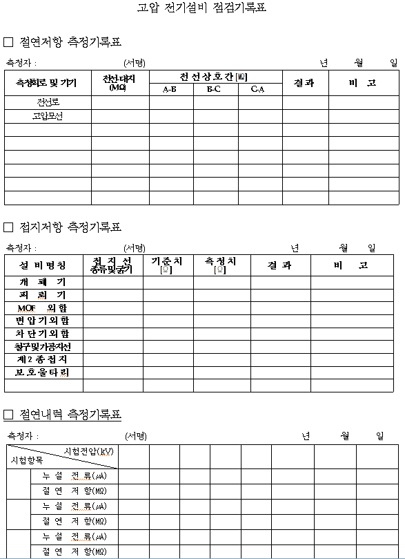2.3.6 고압설비 점검 기록표