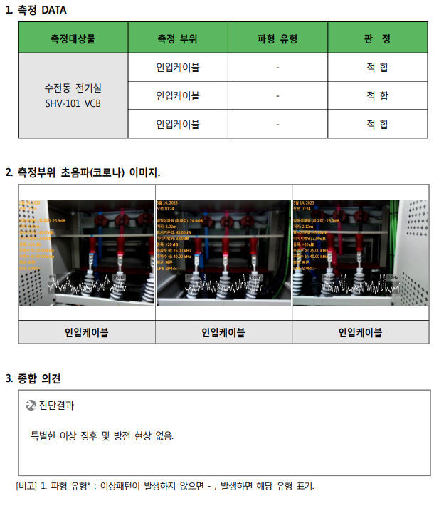 | 1) 고압기기 사고에 의한 전체 정전 예방 2) 특·고압기기 사고에 의한 확대 방지 및 사고를 최소화로 예방 3) 기기의 수명 예측 및 예방보전의 기초자료 활용 의한 효율적 관리 4) 특·고압설비의 안전성 및 전력공급의 신뢰성 확보 |