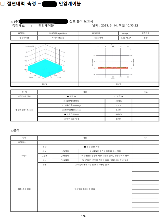 인입케이블의 한 상에 대한 측정 예시 자료