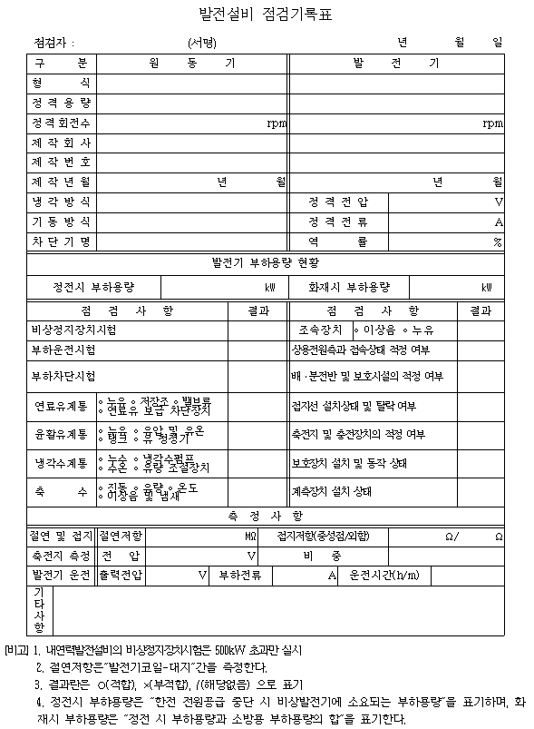 2.10.5 예비발전설비 점검 기록표
