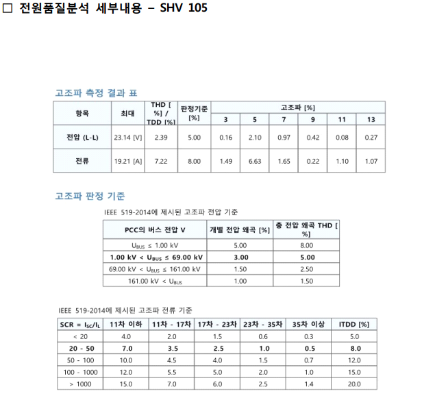 | 1) 판정기준 2) 참고사항(고조파) ◆ 전압 THD ▶ IEEE 519 |