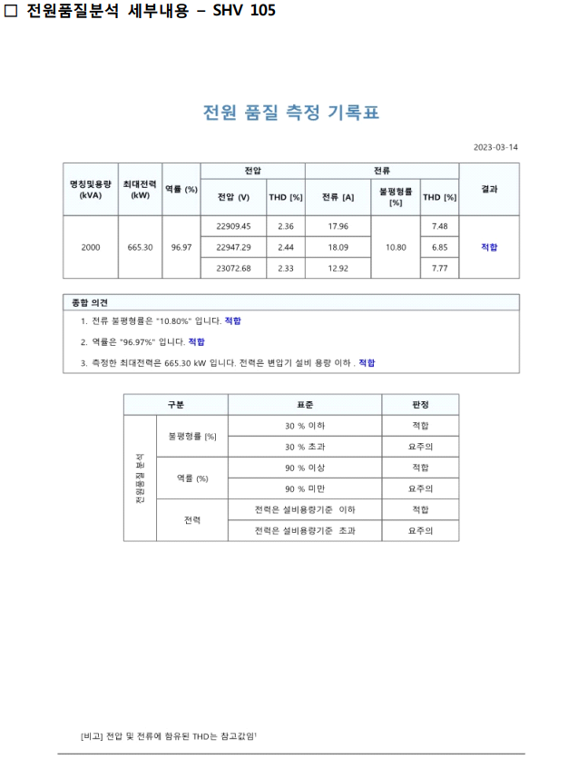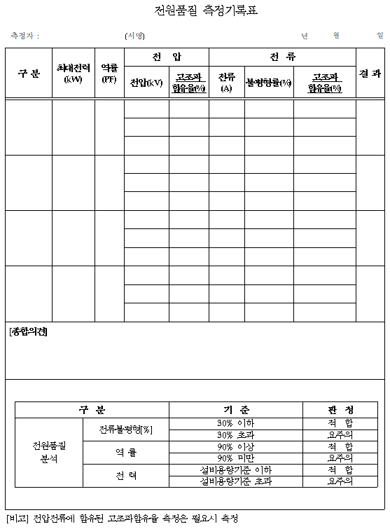 2.8.5 전원품질분석 측정 기록표