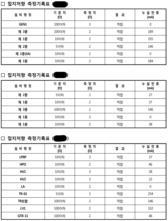 2.2.8 저압설비 점검 기록표(접지저항)