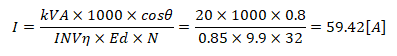 예로, 20[kVA]로 선정하여 계산을 해보자.