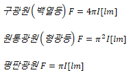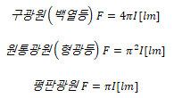 광속 계산 시 아래와 같이 구, 원통, 평판에 따라 수식이 달라질 수 있다.