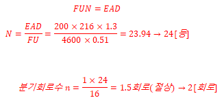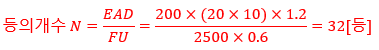 | 참조 : 등의 개수 산정 시 계산값에서 소수점 이하가 발생하면 절상하여 구한다. |