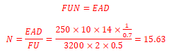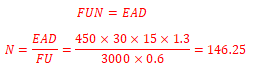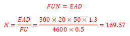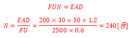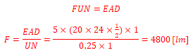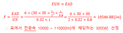 문제 2) 길이 30 [m], 폭 50 [m]인 방에 평균 조도 200 [lx]를 얻기 위해 전광 속 2500 [lm]의 40 [W] 형광등을 사용했을 때 필요한 등수를 계산하시오. (단, 조명률 0.6, 감광 보상률 1.2이고 기타 요인은 무시한다.)