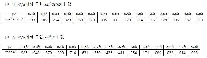 문제 3) 그림과 같이 높이 5 [m]의 점에 있는 백열전등에서 광도 12500 [cd]의 빛이 수평 거리 7.5 [m]의 점 P에 주어지고 있다. [표 1], [표 2]를 이용하여 다음 각 물음에 답하시오.