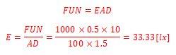 문제 1) 1000 [lm]을 복사하는 전등 10개를 100 [m2]의 사무실에 설치하고 있다. 그 조명률을 0.5라고 하고, 감광 보상률을 1.5라 하면 그 사무실의 평균 조도는 몇 [lx]인가?