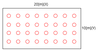| 조건 형광등은 40[W]를 사용, 이 형광등의 광속은 2500[lm]으로 한다. 조명률은 0.6, 감광 보상률은 1.2로 한다. 사무실 내부에 기둥은 없는 것으로 한다. 간격은 등기구 센터를 기준으로 한다. 등기구는 ○으로 표현하도록 한다. |