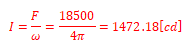 문제 3) 지름 20 [cm]의 구형 외구의 광속 발산도가 2000 [rlx]라고 한다. 이 외구의 중심에 있는 균등 점광원의 광도는 얼마인가? (단, 외구의 투과율은 90 [%]라 한다.)