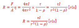 문제 1) 반사율 ρ, 투과율 τ, 반지름 r인 완전 화간성 구형 글로브 중심의 광도 I의 점 광원을 켰을 때 광속 발산도 R은?