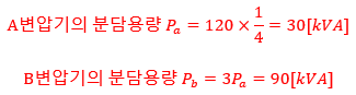 A변압기와 B변압기의 분담용량은 다음과 같다.