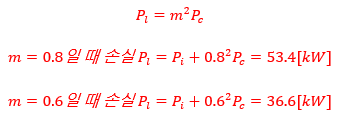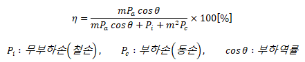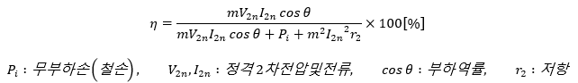 | 참고 : m부하로 운전 시 변압기 효율 ![]() 전부하 시 m=1로 간주한다. |