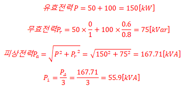 | 참고 : 변압기 한 대 용량은 75[kVA]이며, V결선시 √3을 곱해준다. ![]() |