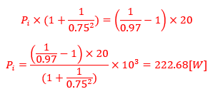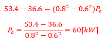 철손이 일정하므로 위의 두 식을 빼면 다음과 같다.
