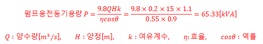 (1) 펌프용 전동기 소요 동력