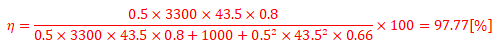 전압 3300 [V], 전류 43.5 [A], 저항 0.66 [Ω], 무부하손 1000 [W]인 변압기에서 다음 조건일 때의 효율을 구하시오.