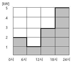 변압기의 1일 부하 곡선이 그림과 같은 분포일 때 다음 물음에 답하시오. (단, 변압기의 전부하 동손은 130 [W], 철손은 100 [W]이다.)