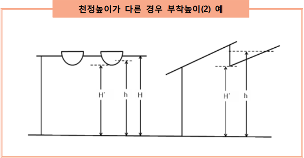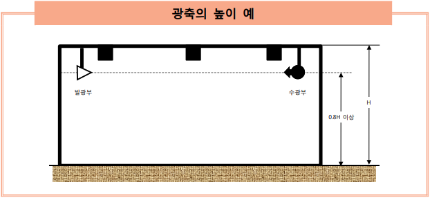 2.4.3.15.4 광축의 높이는 천장 등(천장의 실내에 면한 부분 또는 상층의 바닥하부면을 말한다) 높이의 80 % 이상일 것