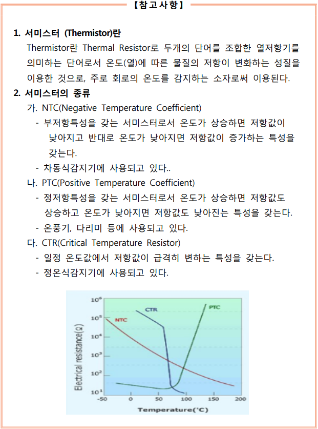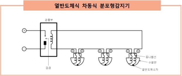 1. 열반도체식은 반도체 소자인 서미스터의 부온도특성을 이용해 화재시 감시 구역의 온도 상승을 감지해 화재신호를 발신한다.