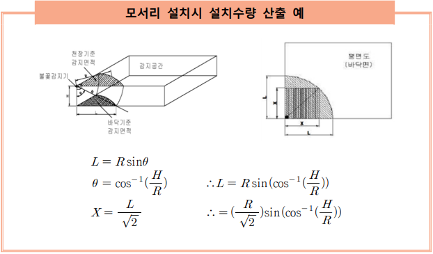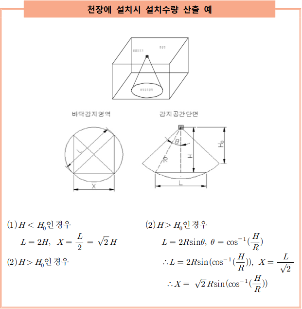 2.4.3.13.2 감지기는 공칭감시거리와 공칭시야각을 기준으로 감시구역이 모두 포용될 수 있도록 설치할 것