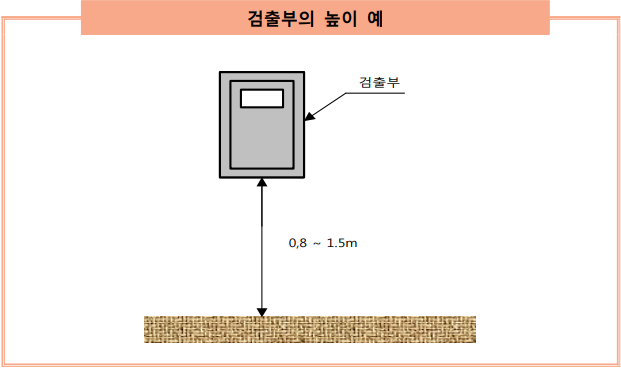 검출부는 유지보수나 정기점검이 편리하도록 그림과 같이 0.8m 이상 1.5m이하에 위치하여야 한다.