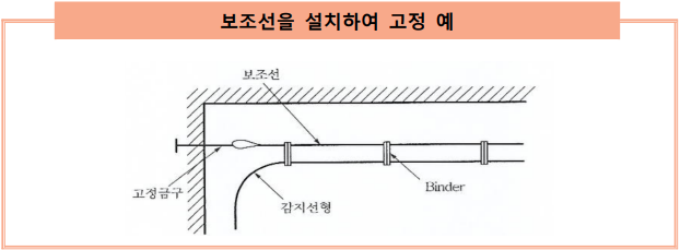 2.4.3.12.1 보조선이나 고정금구를 사용하여 감지선이 늘어지지 않도록 설치할 것