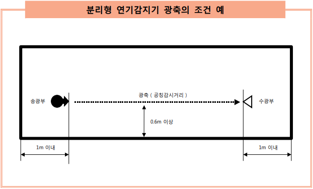 2.4.3.15.2 광축(송광면과 수광면의 중심을 연결한 선)은 나란한 벽으로부터 0.6 m 이상 이격하여 설치할 것