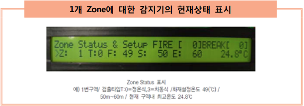 바. 동작시험 1) 광센서 감지기는 온도감지 기준 길이가 1m이다. 따라서 토치램프 등을 이용해서 광센서 감지기 1m정도를 좌우로 왔다 갔다하면서 온도를 서서히 올려서 동작여부를 확인한다. 2) 광센서감지기 중계기에서 1채널당 감지구역(Zone)을 여러개로 분리할 수 있고, 각 Zone별로 감지방식을 차동식, 정온식으로 선택 가능하고 동작온도 등을 별도 설정할 수 있다.