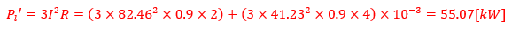 (3) 전력용 콘덴서를 설치하기 전과 후의 선로의 전력 손실[kW]을 구하시오.
