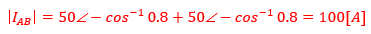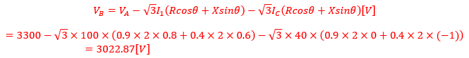 그림과 같은 3상 배전선에서 변전소(A점)의 전압은 3300 [V], 중간(B점)지점의 부하는 50 [A], 역률 0.8(지상), 말단(C점)의 부하는 50 [A],역률 0.8이고, A와 B사이의 길이는 2 [km], B와 C 사이의 길이는 4 [km]이며, 선로의 [km] 당 임피던스는 저항 0.9 [Ω],Ω], 리액턴스 0.4 [Ω]이라고Ω] 할 때 다음 각 물음에 답하시오.