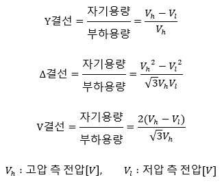 참고 단권 변압기의 3상 결선별 자기 용량과 부하 용량의 비