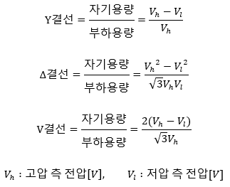 단권 변압기의 3상 결선별 자기 용량과 부하 용량의 비