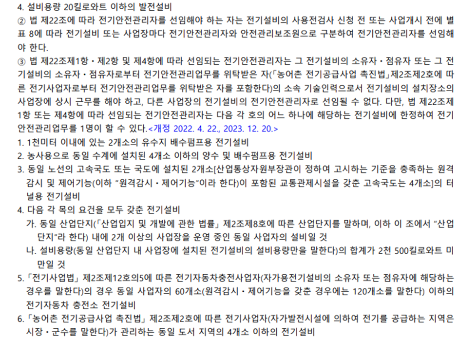 전기안전관리법 시행규직 제25조(전기안전관리자의 선임 등)