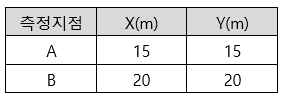 다음은 경계측량을 위하여 측정한 지점 A, B이다. 지점 A, B의 방위각을 구하시오. (단, X는 종선, Y는 횡선이다.)