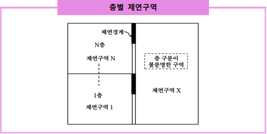 2.1.1.5 하나의 제연구역은 2 이상의 층에 미치지 않도록 할 것. 다만, 층의 구분이 불분명한 부분은 그 부분을 다른 부분과 별도로 제연구획 해야 한다.