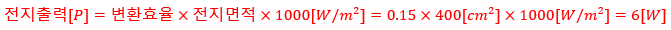 다음과 같은 조건에 만족하는 태양전지의 출력[W]을 구하시오.