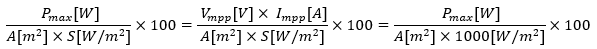 태양광발전 모듈의 광 변환효율 공식을 쓰고 설명 하시오.