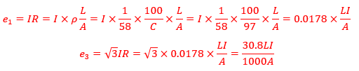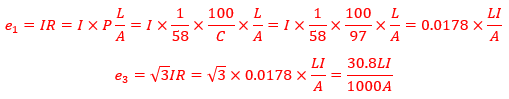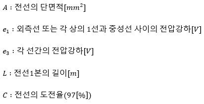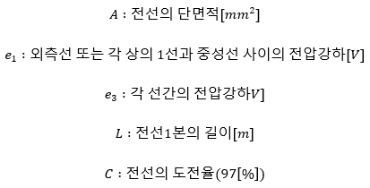 3상3선식 전압 강하를 구하고자 하는 경우 이용 할 수 있는 약산식을 다음 조건을 이용하여 구하시오.