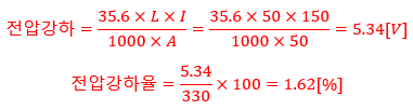 전압강하 : 178.2[V] x 0.02 = 3.564[V]