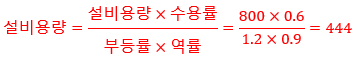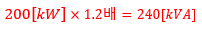 설비용량 800[kW], 부등률 1.2, 수용률 60[%]일 때 변전실 용량을 계산하여 변압기의 최소 표준용량[kVA]을 선정하시오. (단, 역률은 90[%] 이상 유지되는 조건이다.)