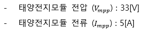 최대 출력 전압 : 29.7[V] x 6(직렬) = 178.2[V]