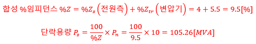 기준용량을 10[MVA]로 할 때, 전원측 임피던스를 먼저 구해준다.
