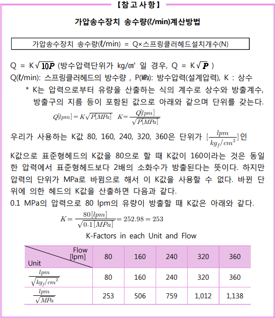 나. 저수량 계산방법 : 개방형 스프링클러헤드를 사용하는 경우