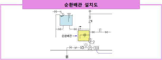 체크밸브와 펌프사이에서 분기하여 구경(호칭지름)이 20㎜ 이상인 배관을 설치한다. 순환배관에는 절대로 개폐밸브로 설치하여서는 아니된다.