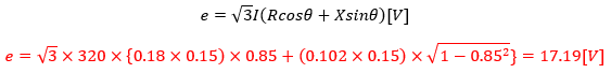 정격 전류가 320[A]이고, 역률 0.85인 3상 유도 전동기가 있다. 다음 제시한 자료에 의하여 전압 강하를 구하시오.