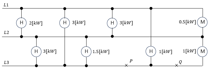 (2)그림의 설비 불평형률은 몇 [%]인가? (단, P, Q점은 단선이 아닌 것으로 계산한다.)