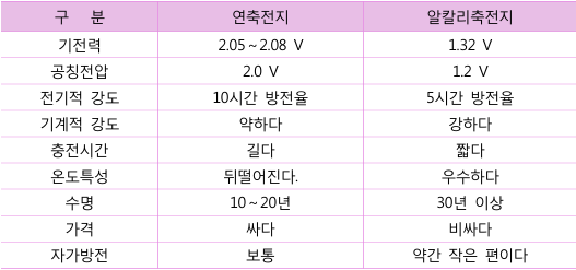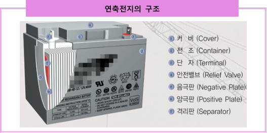 나. 축전지설비 상용전원이 정전되거나 긴급사항으로 인한 전원공급이 되지 않을 때에 즉시 작동하여 전원을 발생하여 소방대상물의 일정 필요량을 비상전원을 확보하 여 주는 설비이며 주로 정격전원이 공급될 때 까지 중간전원으로 많이 사용 되는 기동용 축전지에 상시 충전되었다가 사용되는 것이다. 또한 평상시에는 상용전원으로부터 전기를 공급받아 축전하고 있다가 상용전원이 차단되면 자동으로 전원이 공급될 수 있도록 한 설비로서 자동화재탐지설비의 수신기 감시제어반 유도등과 같이 소용량에 사용된다.