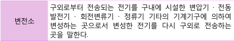 ※ 큐비클식 설비 : 수전장치(전력수급용 계기용변성기, 주차단장치, 부속장치)와 기타 의 기기 및 배선을 하나의 상자에 수납한 것